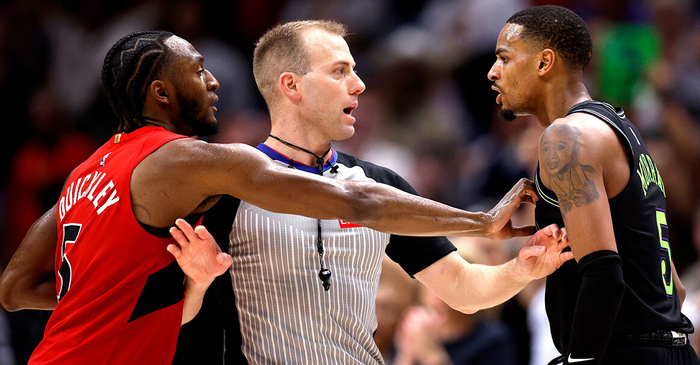北京时间3月12日,在多伦多猛龙111-122不敌新奥尔良鹈鹕的比赛第四节中,场上的气氛变得紧张起来。当时德章泰·穆雷在贾马尔·希德的防守下命中一记三分球。随后,穆雷站在倒在地上的希德身旁,对着他大声怒吼。伊曼纽尔·奎克利随即上前,与穆雷发生争执,而穆雷也因此被吹罚了一次技术犯规。